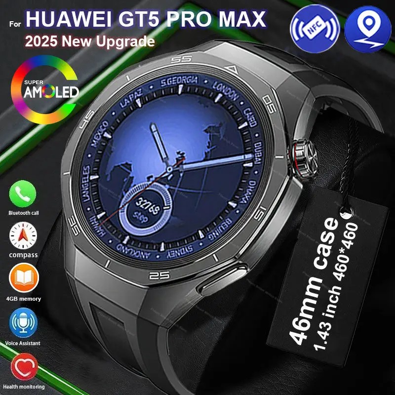 For Original Huawei GT 5 Pro Max Smartwatch 2025 HD AMOLED 4G ROM ChatGPT NFC Compass Bluetooth Call Clock Smart Watch Men Women